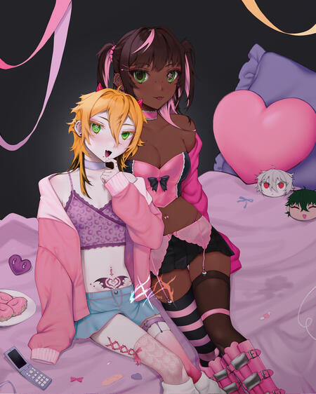 Bedroom fullbody: I will draw your character/s sitting or laying in bed and will draw part of their room. You can both send specific references of things you want to be in the room (ex: plushies, statuettes, posters, etc.) or give me creative freedom over how to decorate the room based on what I think would look good with the character/s.Custom design fee: this fee applies to any illustration where I’m requested to design the character by description. It applies to the final price of the commission, including additional characters and complexity fees